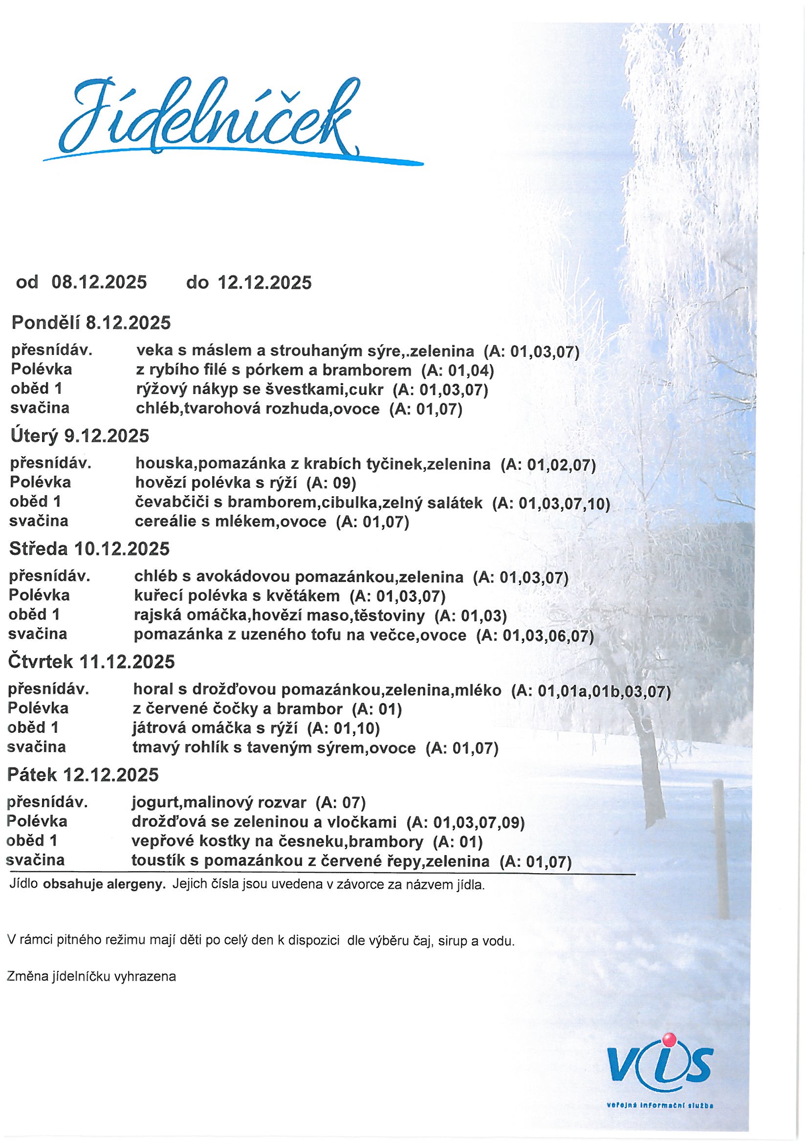Jídelní lístek od 6.12. 2021 - do 10.12. 2021