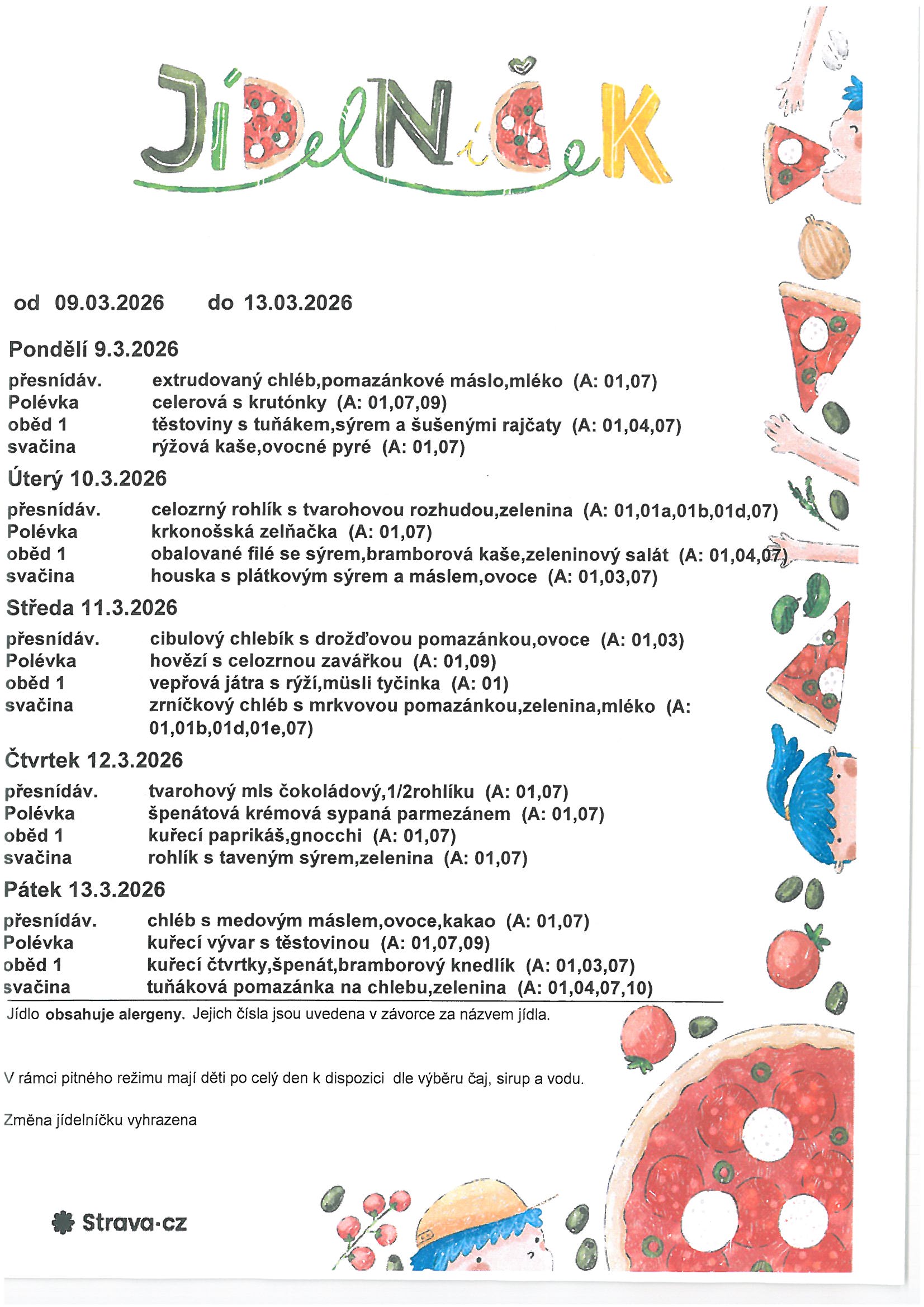 Jídelní lístek 9.3. - 13.3.2026