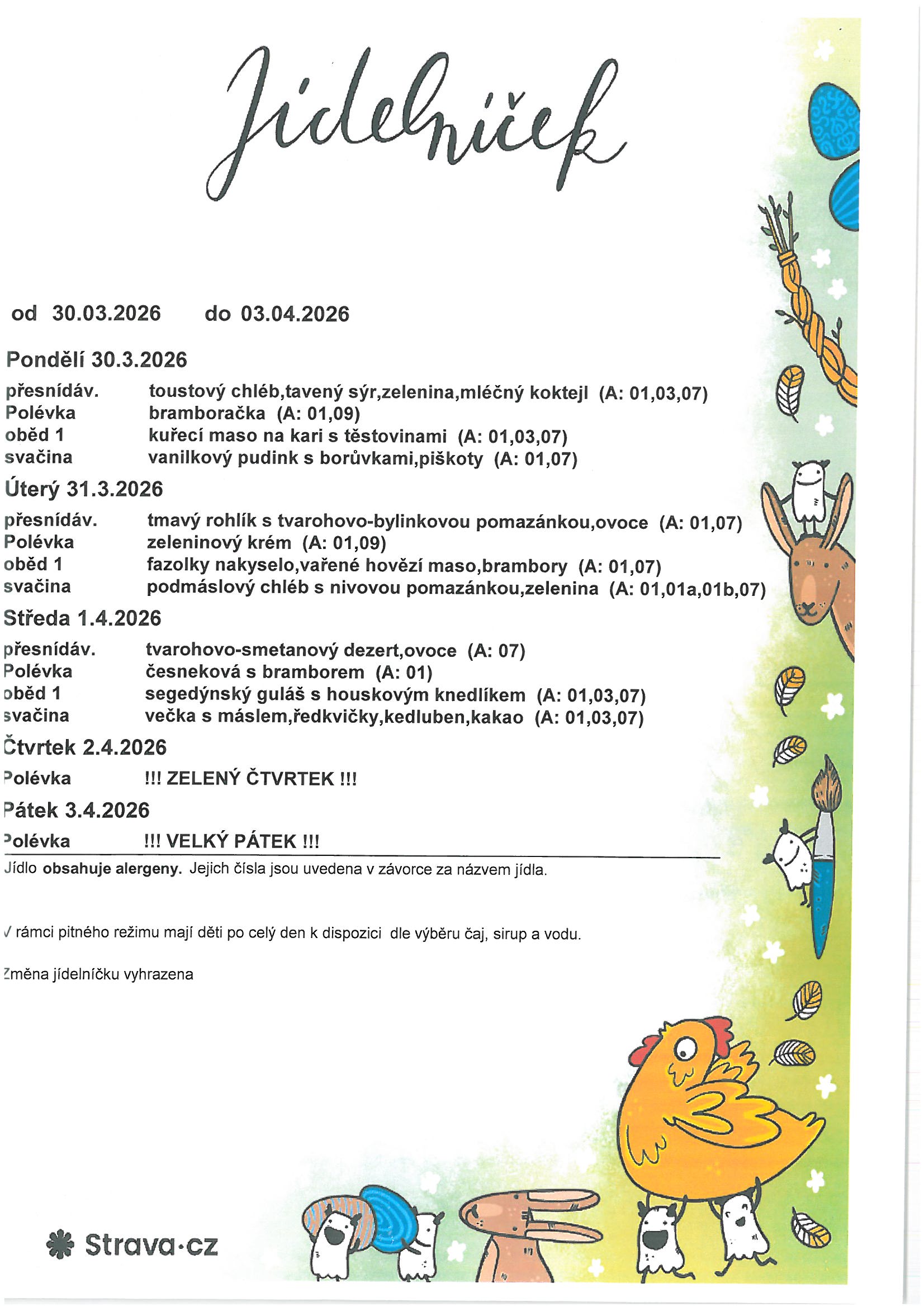 Jídelní lístek 30.3. - 3.4.2026