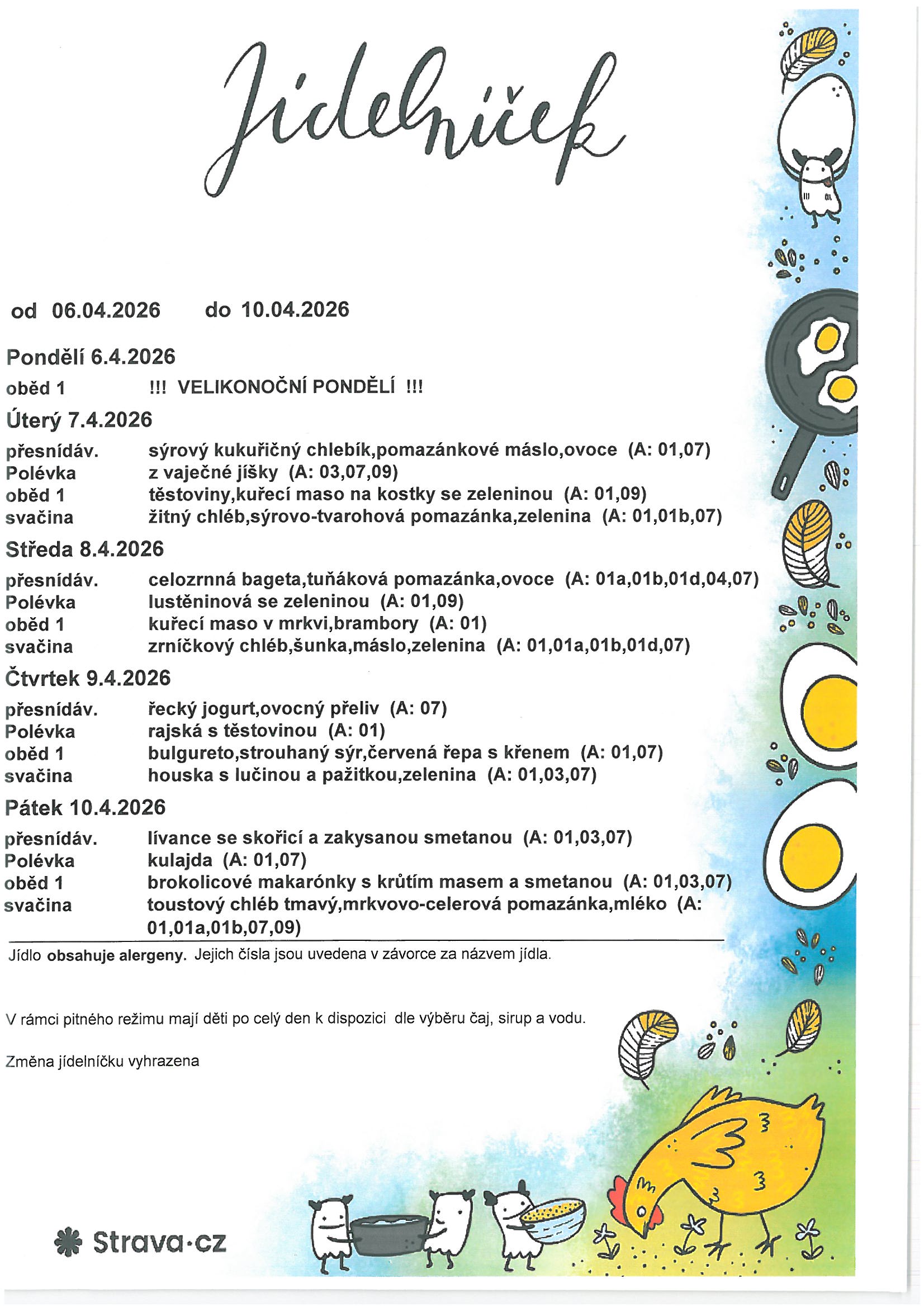 Jídelní lístek 6.4. - 10.4.2026