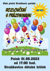 Klub přátel Strážkovic pořádá v pátek 01.09.2023 od 17:00 hod. Rozloučení s prázdninami na dětském hřišti ve Strážkovicích.