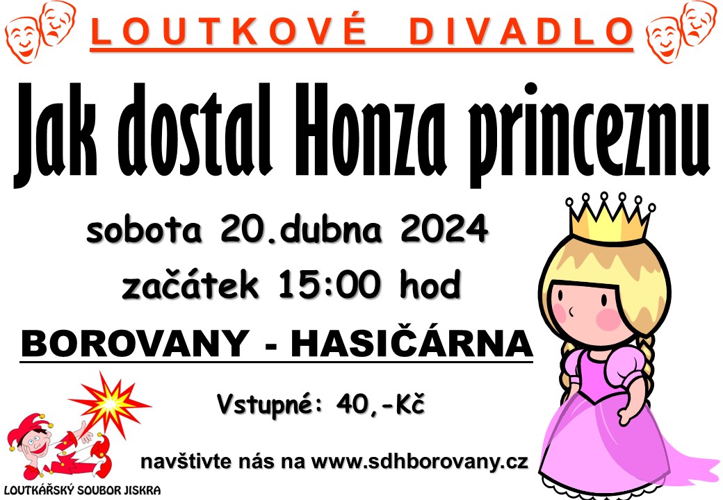 Loutkářský soubor Jiskra Vás zve na loutkové divadlo - Honza hledá kašpárka - Borovany - hasičárna, které se uskuteční v sobotu 08.12.2023 od 13:30 a 15:00 hod.