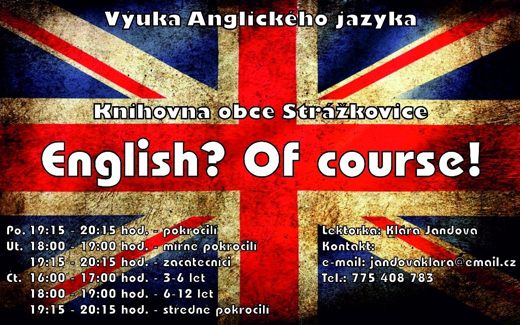 Jazykové kurzy probíhají v Knihovně obce Strážkovice pod vedením lektorky paní Kláry Jandové v délce 60 minut.
